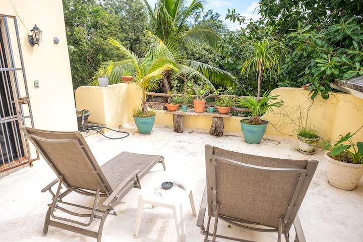 Cooles und komfortables Studio mit Queensize-Bett, im Baumkronendach des friedlichen Dschungels. Dieses Studio ist an das Haupthaus Toh Ha Spa angebaut. In der Nähe von Sehenswürdigkeiten: Cenotes, Puerto Aventuras Marina, Tulum, Playa Del Carmen. Nur wenige Gehminuten vom Hotel Barceló Riviera Maya entfernt (für Veranstaltungen überprüfen Sie, ob Sie nicht verpflichtet sind, im Hotel zu bleiben). Ein Mietwagen ist sehr zu empfehlen. Restaurants und Supermarkt sind 5 Fahrminuten von dieser schönen Wohnung im Dschungel entfernt.