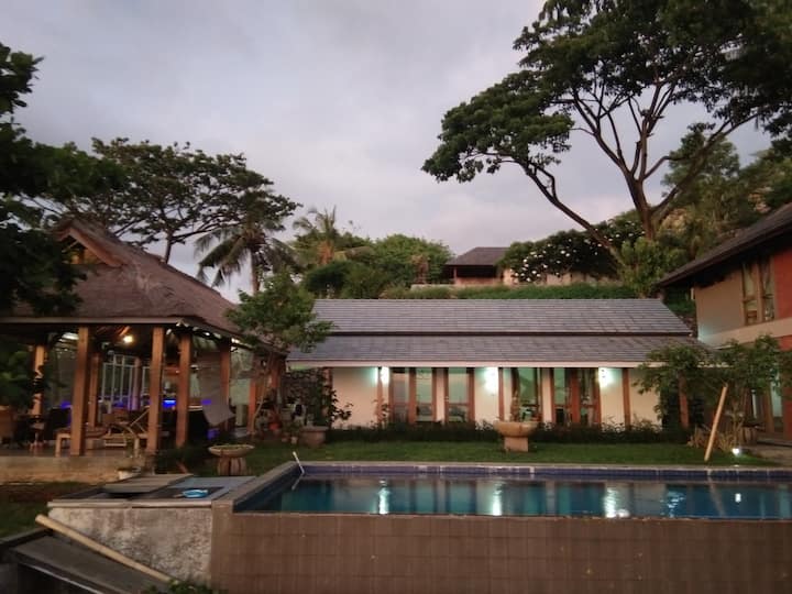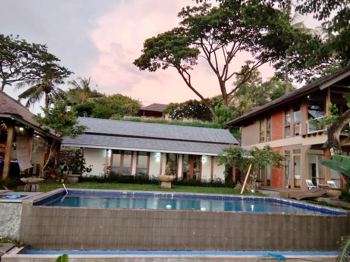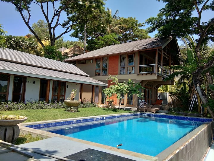 hallo, das sind Mumi und Paul...wir haben diese Villa mit 4 Schlafzimmern, jedes Zimmer ist dem Infinity-Pool und dem Meer zugewandt.... der Blick auf den Sonnenuntergang mit Blick auf den Berg Agung Bali über das Meer. Die Villa liegt auf dem Hügel, umgeben von einem grünen, sehr entspannenden Ort weg von all dem Lärm, aber nur 10 Minuten von Senggigi entfernt. Wir möchten dieses außergewöhnliche Gefühl teilen, wenn du morgens aufwachst und dich vom Vogel im sonnenverwöhnten Grün des Hügels und erstaunlichem Meerblick und frischer Luft aus der Natur