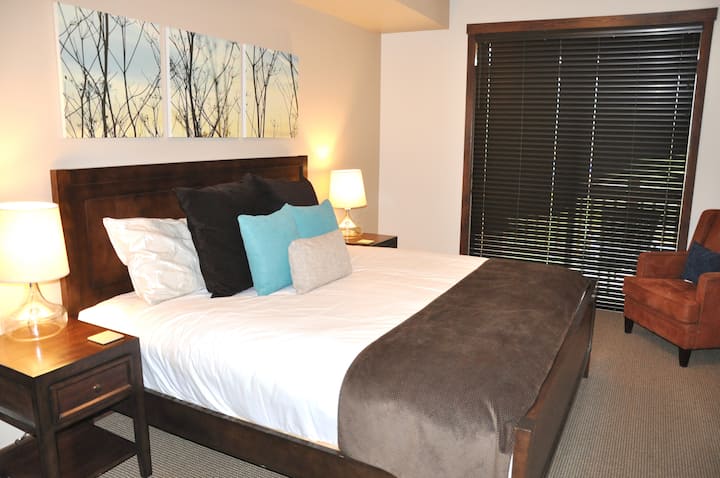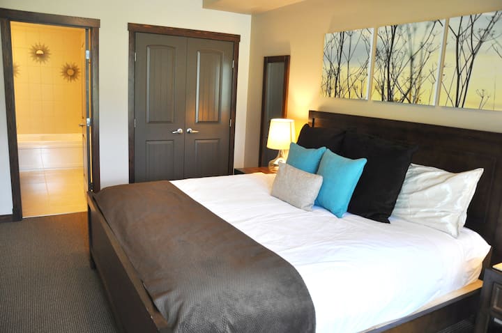 Besuche die Berge mit Stil in dieser modernen Resort-Wohnung in Canmore, Alberta.