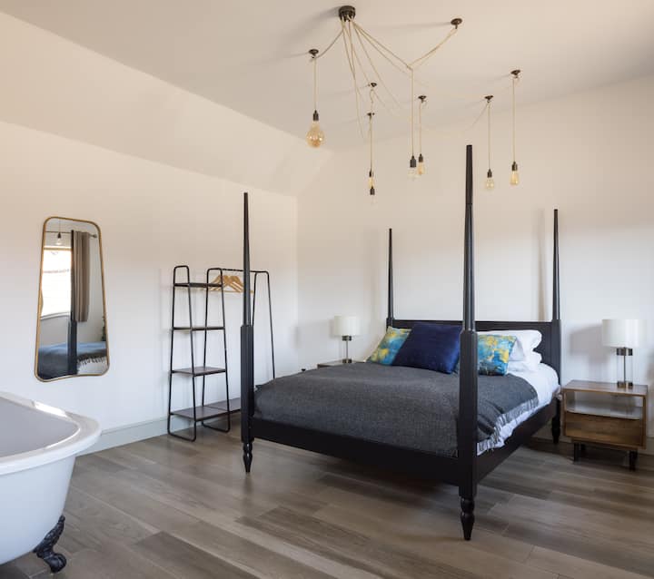 Jede Hauptscheune hat ihren eigenen Namen, Charakter und Stil, mit 2 Schlafzimmern, 1 Badezimmer und einem offenen Wohnbereich und einer Küche. Amba Barn verfügt über einen großen Tisch für 12 Personen und einen größeren Wohnraum, an dem man sich als Gruppe versammeln kann.