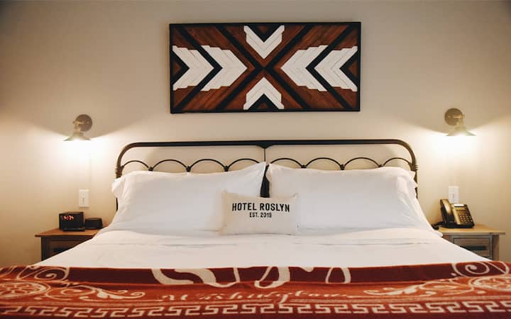Das Hotel Roslyn ist ein Boutique-Hotel im Herzen der Innenstadt von Roslyn, WA - einer malerischen Stadt, die wahren Charme definiert. Wir laden dich ein, während deines Aufenthalts in einem unserer 11 Zimmer dem Alltag zu entfliehen. Alle Zimmer teilen sich den Komfort von zu Hause mit keiner der Verantwortlichkeiten. Danke, dass du uns deinen Besuch vertraust, wir freuen uns darauf, dich zu beherbergen!