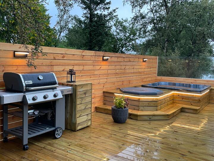 Entspanne dich mit dieser Ausstattung: Außendusche und Jacuzzi.
