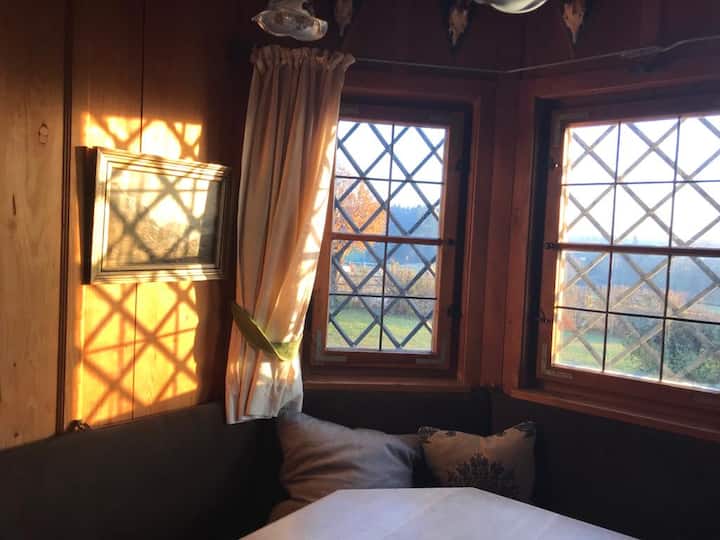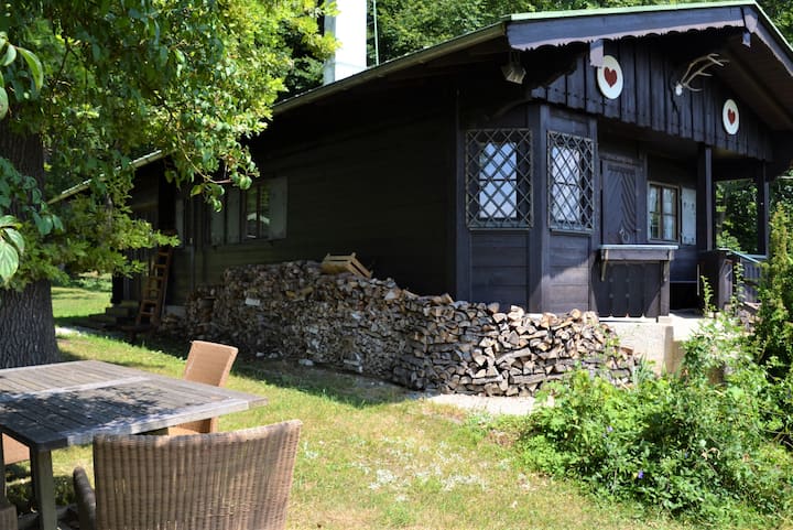 Uriges Jagdhäuschen mit Blick auf Alpenpanorama