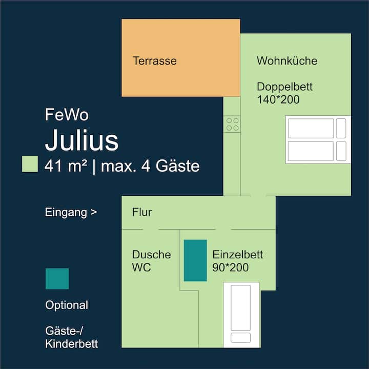 FeWo Julius - Wohnküche mit Bett + 1 Raum + Bad