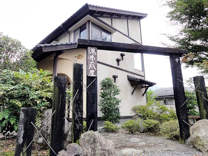 „Yufu-no-Kaze“ mit privatem Badehaus, Außenbad mit fließendem Wasser aus der natürlichen Quelle „Aoyu“, Grillplatz und kostenlosem Parkplatz