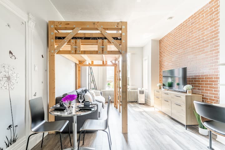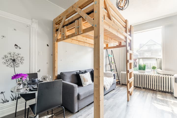 Loft-Bett, sonnendurchflutete Unterkunft, zu Fuß zum See, Junggesellen-Unterkunft in der Innenstadt