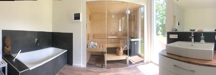 Entspanne dich mit dieser Ausstattung: Sauna und Jacuzzi.