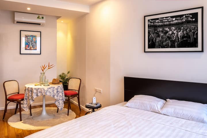 Derzeit genieße ich meine Rolle als Kunstsammler und verwalte ein lokales Spezialitätencafé. Mein Zuhause ist ein ruhiges Refugium, geschmückt mit Kunst und geschmackvoll gestaltet und bietet ein einzigartiges Ambiente für deinen Aufenthalt in Hanoi.
