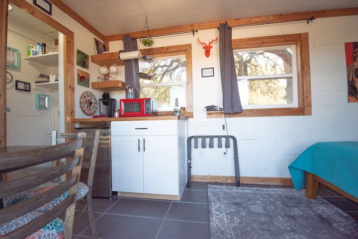 Willkommen in deinem charmanten Landhaus, das kürzlich im Reiseführer The Hill Country Bon Vivant's Guide to the Hill Country vorgestellt wurde! Günstig gelegen am TX Wine Trail b/w Johnson City und FBG. Im Herzen des Hill Country, mit Weingütern, Brennereien, Restaurants, Live-Musik und viel Unterhaltung in jeder Richtung. Last Stand ist 5+ Hektar mit historischen Lebendeichen, einem saisonalen Bach (der Fluss hängt von den letzten Niederschlägen ab), zischenden Kolibris und einer Vielzahl von Wildtieren. Genieße deinen Aufenthalt!