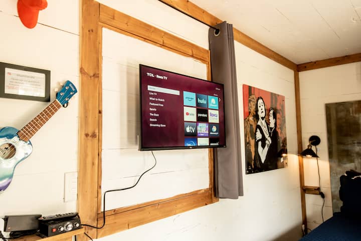 Deine Buchung gewährt dir exklusiven Zugang zum gesamten Ferienhaus und zur gemeinsamen Nutzung des Gemeinschaftsbereichs mit einer Feuerstelle, einem Holzkohlegrill, einem Picknicktisch und Sitzsackwurfspielen. Die vier Cottages sind strategisch um den Gemeinschaftsbereich herum angeordnet und fördern ein Gefühl der Gemeinschaft.