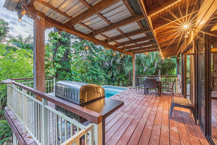 Tropische Gartenhütte – privater Pool und geschlossener Eingang