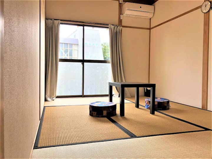 Gästehaus DOYA vor dem Bahnhof von Miyota in der Präfektur Nagano, 7 Minuten zu Fuß vom Schnellbushaltestelle entfernt, 5 private Zimmer, 1 japanisches Zimmer, 6 Tatami-Matten, für 1 bis 3 Personen