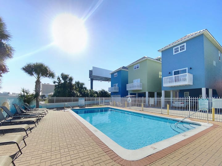Willkommen in SummerTowne 1! Dieses Haus mit 2 Schlafzimmern und 2,5 Bädern bietet Platz für 7 Personen und liegt direkt gegenüber den berühmten weißen Sandstränden der Smaragdküste in einer kleinen Gemeinde mit einem Pool! Genieße die Geräusche des Ozeans direkt von deinem Hauptschlafzimmer-Balkon oder mache einfach einen kurzen Spaziergang, um die magische Aussicht aus erster Hand zu erleben. Diese Gemeinde befindet sich in großartiger Lage: gegenüber vom Strand, eine 3-minütige Fahrt vom Pier Park und eine 10-minütige Fahrt von 30A entfernt. Du kannst das Beste aus der Smaragdküste wirklich genießen.