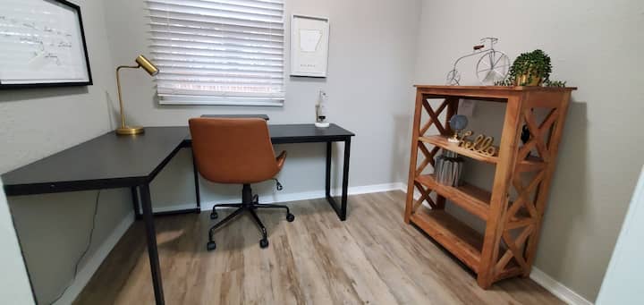 Ein Zimmer mit WLAN, das sich gut zum Arbeiten eignet.
