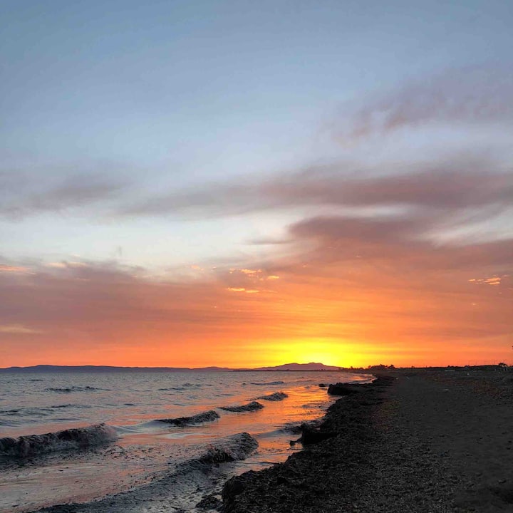 Mit Aussicht auf: Strand und Berg