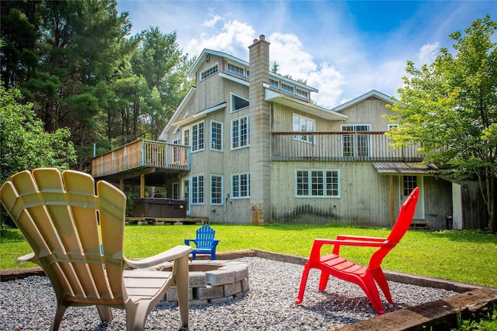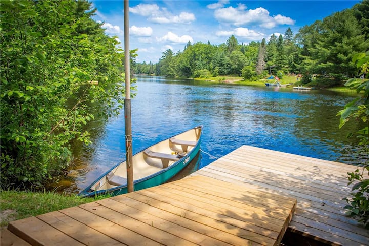 Entspanne dich im Whirlpool und in der Sauna mit Blick auf den Muskoka River, schwimme, fahre Kajak, Kanu, angeln und bleibe mit High-Speed-Internet und Fernsehern mit Netflix für gemütliche Nächte in Verbindung.