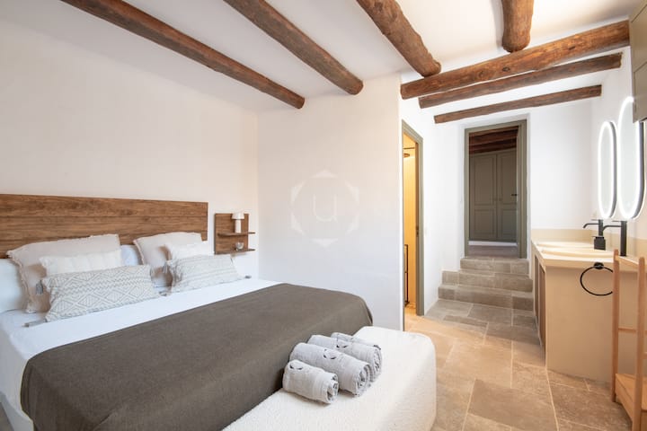 Wir sind ein Ehepaar, das gerne reist, und wir vermieten dieses Haus aus dem Jahr 1782 an Menschen, die es genießen möchten, wenn wir nicht da sind, für dieses wunderbare Land, das Ampurdán. Zum guten Lesen eines Buches, zum Musikhören, zum Telearbeiten, zum Genießen einer idyllischen Agape oder einfach nur zum Führen eines großartigen Gesprächs in einem der Zimmer, alle mit unglaublicher Aussicht, sowohl innen an den Decken als auch auf der Terrasse.