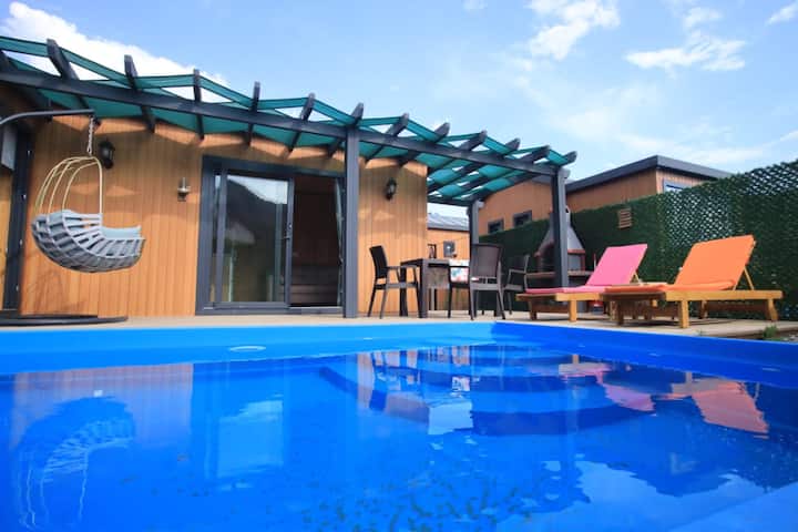 Bungalow mit Pool, nur wenige Gehminuten vom Meer entfernt