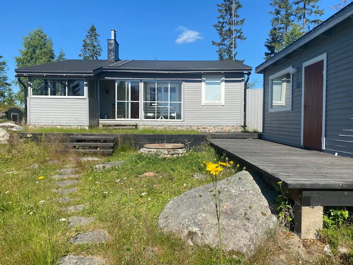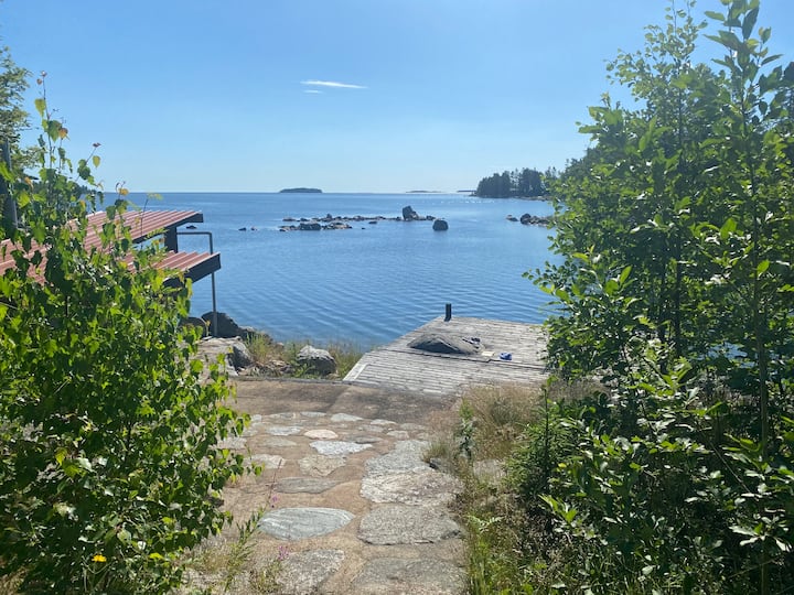 Gemütliches Ferienhaus mit Meerblick und eigenem Steg.