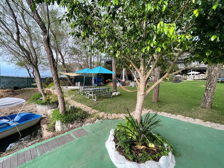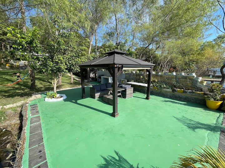Im grünen Bereich können Sie 2 Hängematten und auf der Terrasse und eine Schlafsofa genießen, um sich während Ihres gesamten Aufenthalts auszuruhen und die Aussicht zu genießen. Wir haben auch einen Futillo-Tisch.
