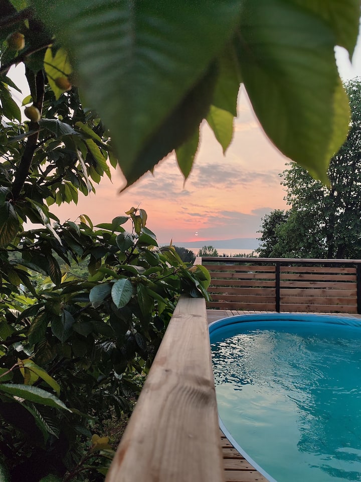 Mit Aussicht auf: Berg und Garten