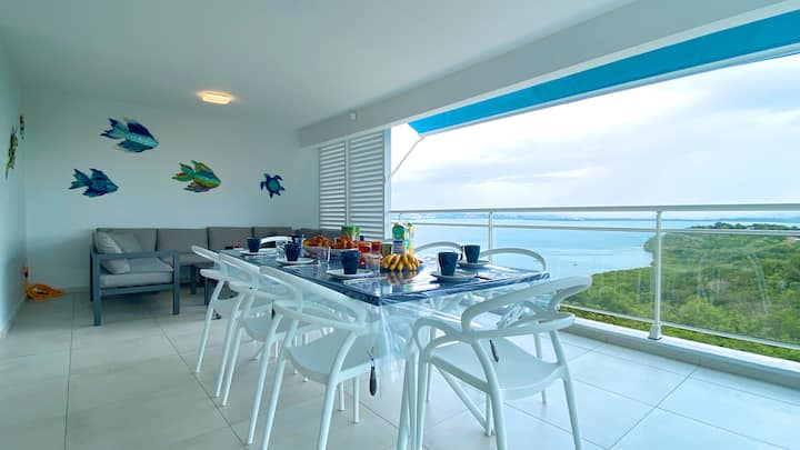 Seltene Perle, Anse Mitan, schöne neue 3-Zimmer-Wohnung, Meerblick