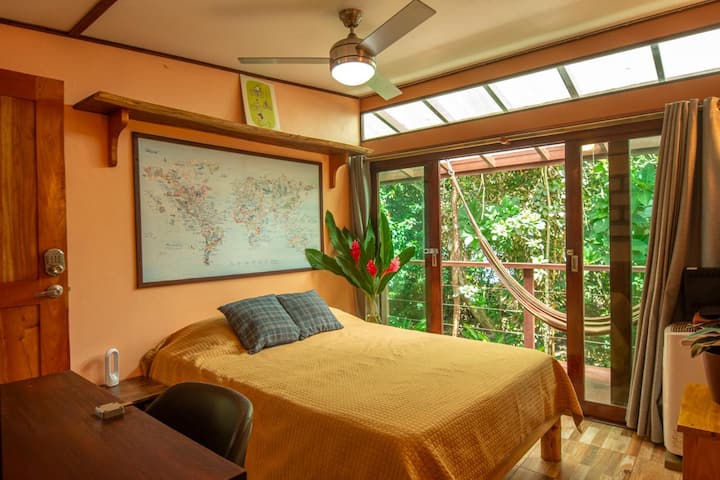 Strand-Baumhaus in Punta Uva – Schlafzimmer mit Klimaanlage