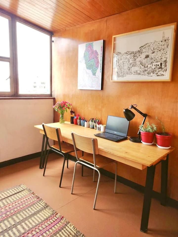 Ein Zimmer mit WLAN, das sich gut zum Arbeiten eignet.