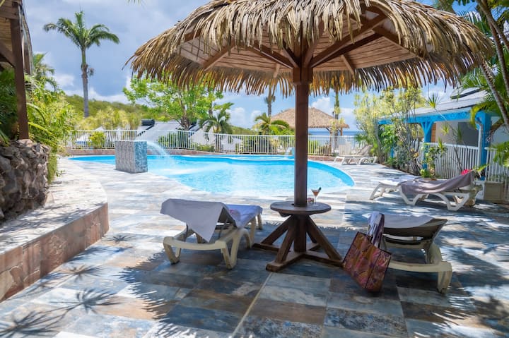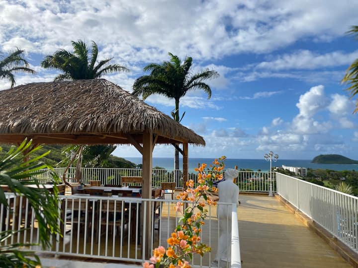 Atemberaubende Aussicht, Privatsphäre im Herzen eines tropischen Gartens, Résidence Vue Mer bietet verschiedene Arten von Unterkünften mit Wohnzimmer, Zimmer, Suiten für 2, 4, 6 oder 8 Personen.