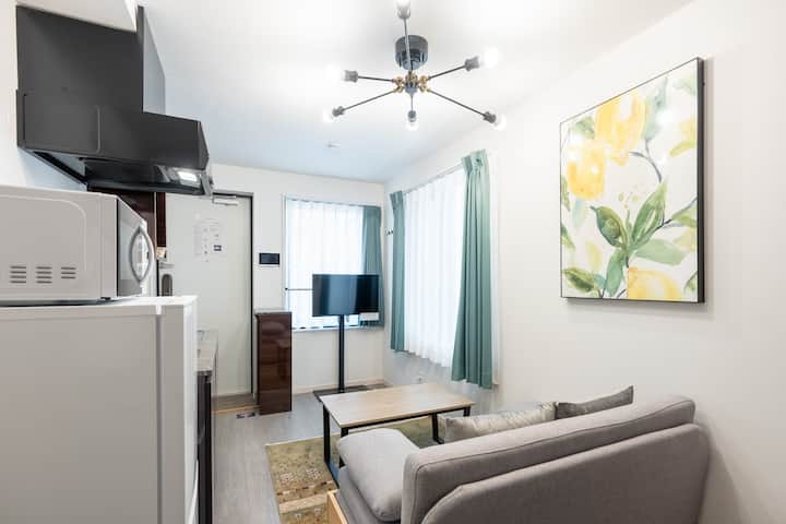 Es ist etwa 8 Gehminuten vom nächsten Bahnhof entfernt, sodass es eine ausgezeichnete Anbindung hat.Wenn du die JR-Linie und die Toei Shinjuku-Linie nutzt, kannst du Shinjuku, Tokio und die wichtigsten Touristenziele leicht erreichen.