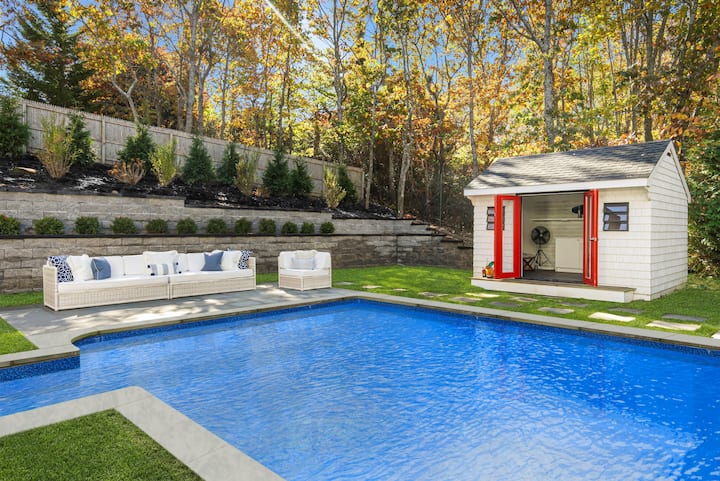 Nur wenige Minuten von der Main Street in Sag Harbor, Long Beach, Wolffer Vineyard und Sagg Main Beach entfernt, ist dieses Haus ein perfekt gelegenes, brandneues, komplett renoviertes Haus mit über 3500 Quadratfuß Innenraum und einem Traumhof für Entertainer – in einer ruhigen Sackgasse. Ein stilvolles Erlebnis in dieser zentral gelegenen Unterkunft!
