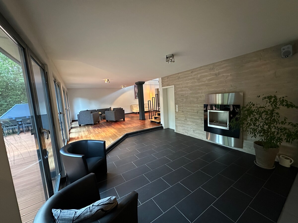 Mein Bootshaus ist ein Ort der Ruhe und Erholung. Es lädt dazu ein, ganz für sich zu sein, den Alltag zu vergessen und liegt in einem kleinen Dorf zwischen Darmstadt und Frankfurt. Ein Loft mit Kamin, Sauna, 12-Meter-Pool und Garten. Individuelle gastronomische Betreuung kann gerne dazu gebucht werden. Ihr könnt aber auch selbst in der voll ausgestatteten Bootshausküche kochen. Die Anreise mit dem Auto ist problemlos und sicheres Parken auf dem Grundstück inklusive.