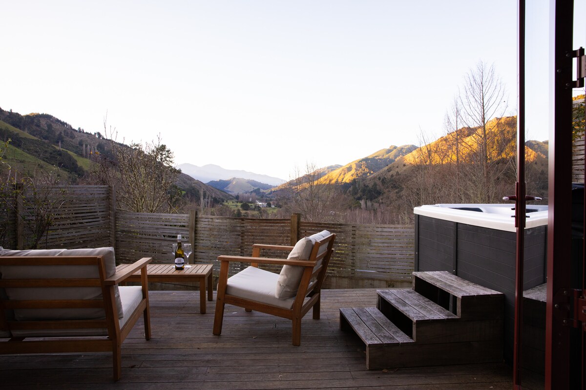 Entfliehe dem Alltag und entspanne dich in diesem ruhigen Einzimmer-Bauernhaus in Dovedale, Nelson-Tasman, das auf einem bewirtschafteten Bauernhof liegt. Genieße morgendlichen Vogelgesang, einen atemberaubenden Blick auf die Berge und einen gemütlichen Rückzugsort mit allem, was du für einen erholsamen Urlaub brauchst – einschließlich eines privaten Whirlpools im Freien. Erkunde die nahegelegenen Wanderwege, Radwege, Weingüter und lokalen Cafés oder entspanne dich auf der Terrasse und genieße die ruhige Umgebung. Perfekt für einen romantischen Kurzurlaub oder einen ländlichen Rückzugsort. Dies ist dein Tor zum Besten der neuseeländischen Landschaft und Natur.