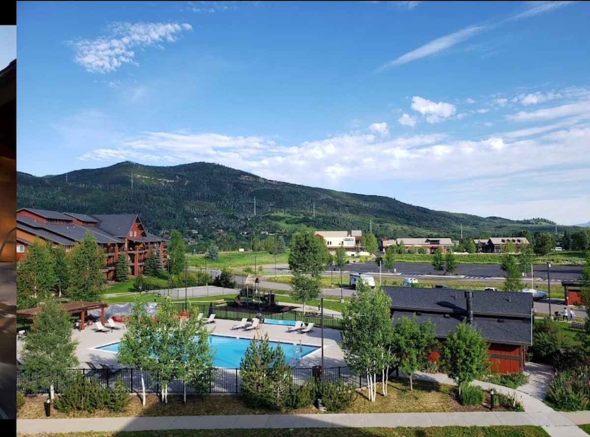 Eine echte private Eigentumswohnung am Berg-Ski-/Ski-out mit herrlichem Balkonblick auf die Pisten! Tritt nach draußen, schnall dich an und mach dich auf den Weg zum Fuß des Steamboat Resorts, wo du ausgezeichnetes Skifahren, Snowboarden und Radfahren erleben wirst. Nach einem tollen Tag auf dem Berg fährst du direkt zur Wohnung und entspanne dich im saisonalen Whirlpool am Hang. (Bitte sende eine Nachricht, um die Verfügbarkeit zu bestätigen). Genieße den gemütlichen Kamin und die voll ausgestattete Küche. Du musst den Berg nie verlassen! *Treppen erforderlich.
