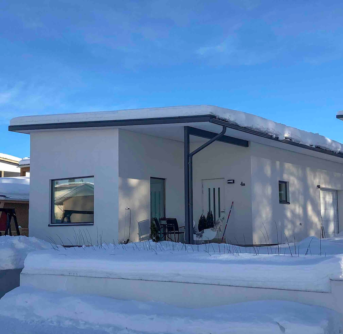 Schneeweißes, klimatisiertes Mini-Haus mit Sauna