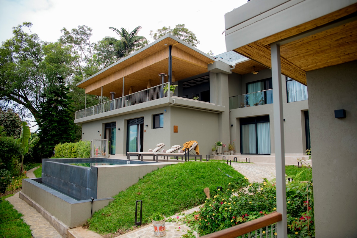 Beautiful, serene place on the water at lake Kivu. Beautiful gardens and superb views of lake, volcanoes and mountain. This Luxury Resort is located in untouched Nature.