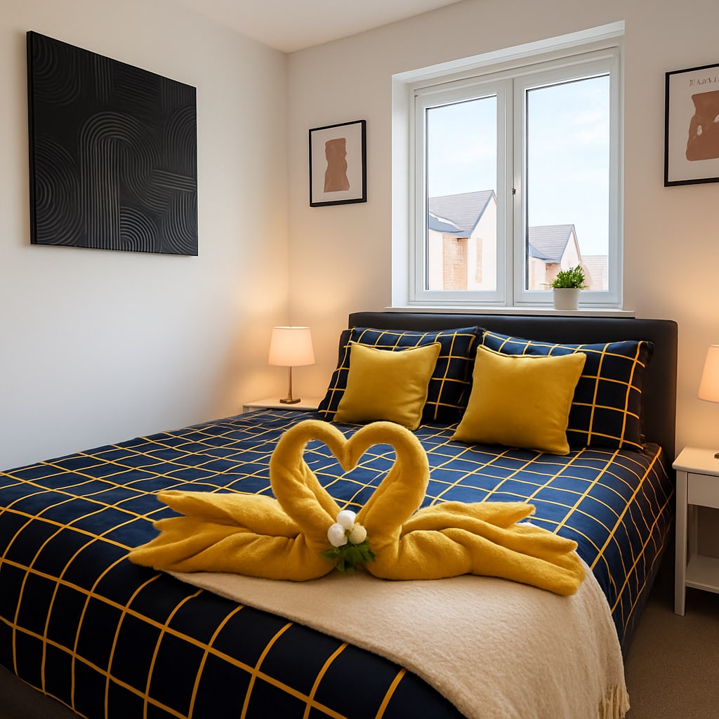 Lazy Nest ist ein Nest to Laze! Nur 15 Gehminuten von der Marktstadt Oakham entfernt. Es ist ein kleines, modernes ruhiges Ferienhaus mit einem großen Herzen, alles, was man für eine wohlverdiente Erholung braucht! Es liegt in einem kleinen Cu-de-Sac mit 2 Parkplätzen am Grundstück. Schnelles Internet mit 2 gemütlichen Schlafzimmern mit Doppelbett, einem Super-Kingsize-Bett, das andere mit zwei lg 3’6-Zoll-Betten. Ein 7’ -Sofa und ein Kuschelstuhl zum Kuscheln und Anschauen eines Films auf Netfix auf dem 55" -Fernseher. Entspanne dich in den Doppelhängematten im natürlichen Garten!