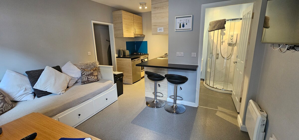 Kürzlich renovierte, denkmalgeschützte 2-Zimmer-Wohnung im ersten Stock. Große, moderne, gut ausgestattete Küche mit Frühstücksbar. Wohnzimmer mit Sofas, Sitzsäcken, Elektrokamin und großem Fernseher. 2 Schlafzimmer, ein Doppelzimmer und ein Zweibettzimmer. Schönes Badezimmer mit freistehender Rolltop-Badewanne. In der hügeligen Landschaft von Kent gelegen, perfekt für ein actionreiches Wochenende mit den Kindern, um Freunde und Familie zu besuchen, oder für ein paar gehobene Übernachtungen mit Freunden. Perfekt für Freunde, Familien oder Auftragnehmer.