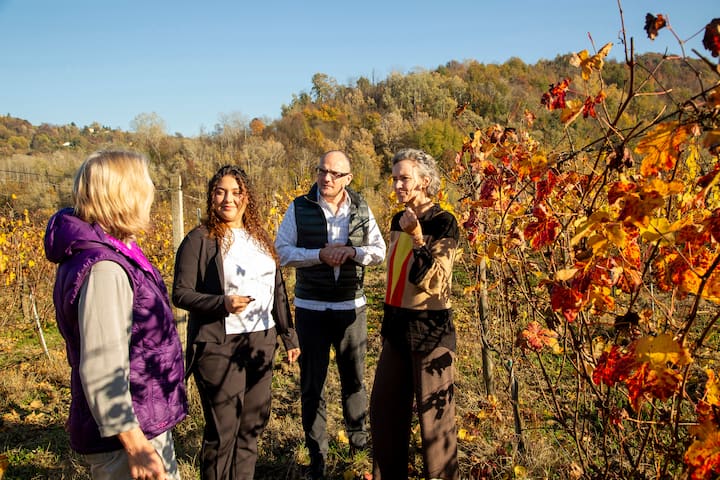 Weinprobe im Weinberg, zwischen Langhe und Monviso