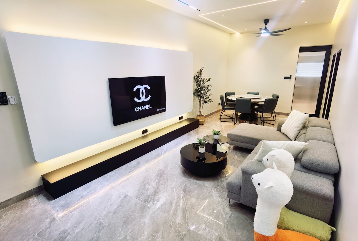 Dies ist ein einzigartiger Ort mit balinesischen Stilen, die dich entspannen und komfortabel machen. 2 Schlafzimmer mit angeschlossenem Bad machen dich privater und 1 Schlafzimmer mit separatem Bad. Ausgestattet mit unbegrenztem 5G-Router mit einer Geschwindigkeit von bis zu 500 Mbit/s kannst du nach Belieben surfen, zusammen mit der TV-Box kannst du mehr als 10 Länder Live-TV-Shows ansehen. Das Hotel liegt in Taman Bukit Perdana, wo es viele Speisen und Getränke wie Zus-Kaffee, Mixue, thailändisches Essen, gebratenen Karottenkuchen, Austernmorgens, Ah Pui würzige Nudeln und mehr gibt