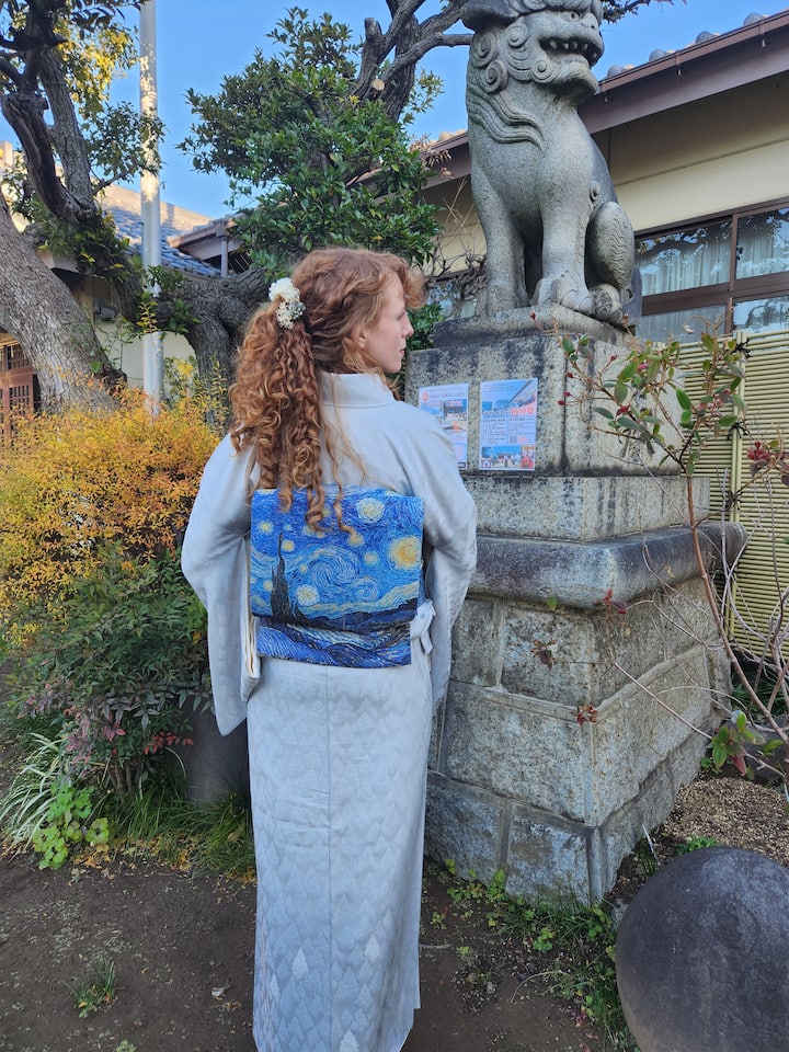 Entdecke die Stadt in einem echten japanischen Kimono