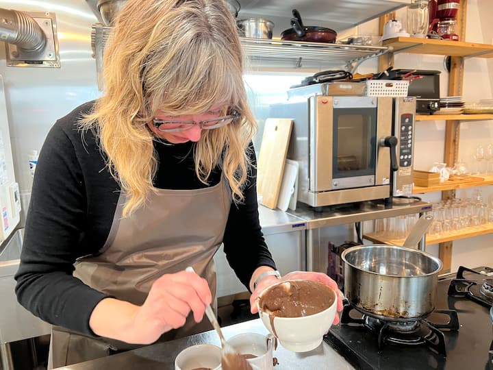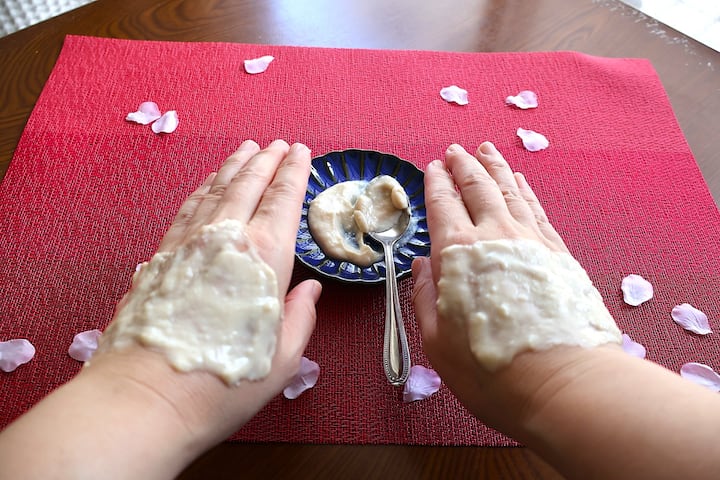 Amazake-Dessert zubereiten mit Sakekasu-Handmaske