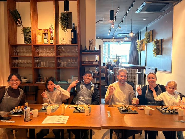 Bereite Sushi in der Nähe des Tokyo Tower mit einem Einheimischen zu