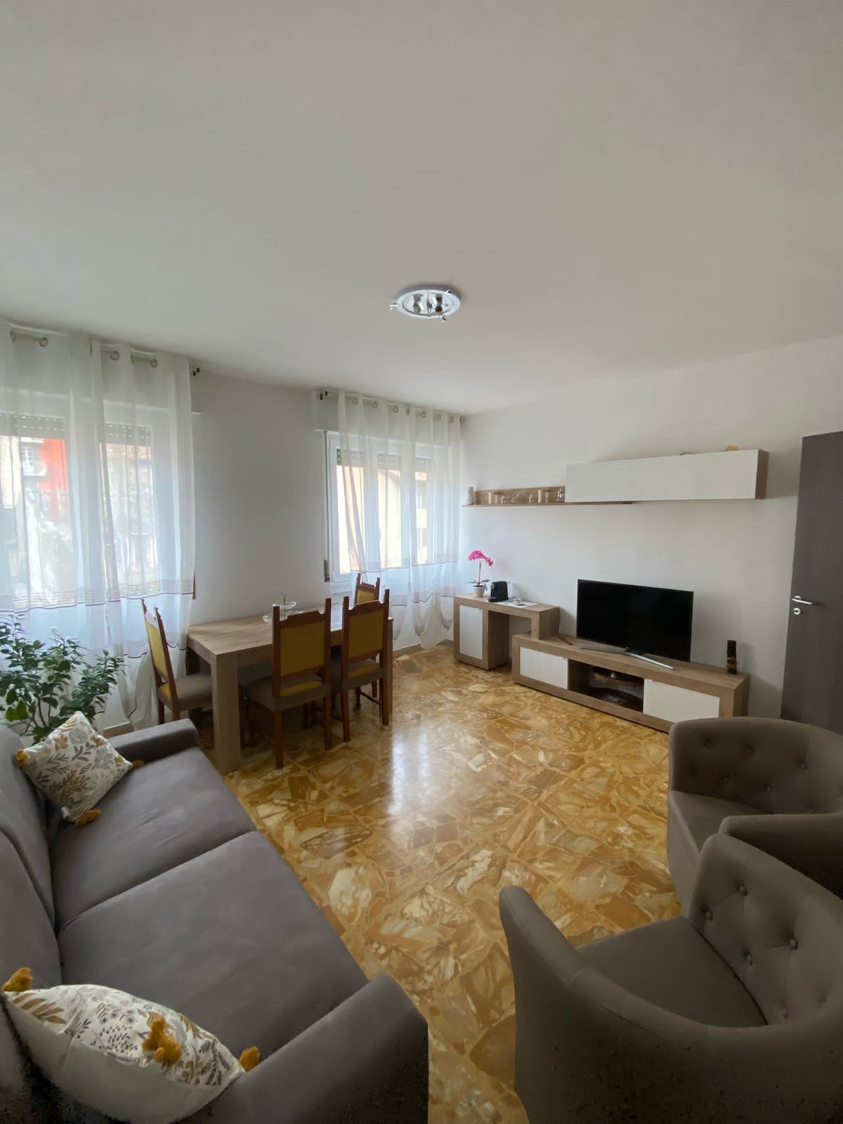 Eingebettet in das historische Viertel von Clusone, eine schmale gepflasterte Straße hinauf, nicht weit vom leichten Trubel der Ristoranti, Gelaterie, Bottegai und Caffetterie entfernt, liegt Casa Celeste. Unsere helle und luftige Wohnung befindet sich im obersten Stockwerk des Santa Maria Assunta-Gebäudes (ursprünglich 1579 erbaut und jetzt neu renoviert). Schlendere durch die Stadt für Espressos, Panini am Morgen, hole dir etwas Bergamasker Salami und Käse und trinke abends Prosecco und blicke über die Terrakotta-Dächer.