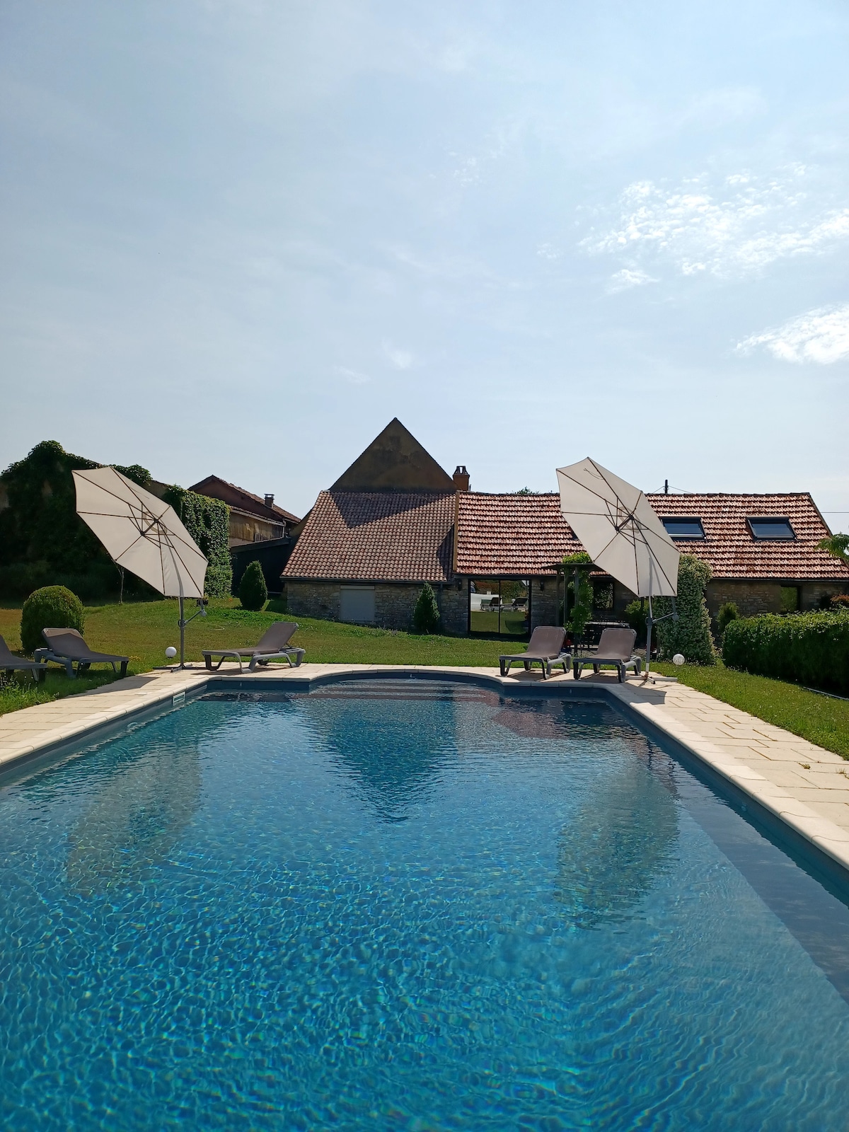 Le Fournil, ein ehemaliger Brotbackofen, ist ein klimatisiertes Ferienhaus für 4 Personen mit freiem Blick auf die Landschaft, ideal für Naturliebhaber und Erholungssuchende: - Im Erdgeschoss: Küche, die zum TV-Wohnbereich hin offen ist, Glasfaser-WLAN - Im Obergeschoss: 2 Schlafzimmer, Bad mit WC - Private Terrasse mit Grill - Zugang zu einem 14*7 m großen Infinity-Pool, der mit drei anderen Ferienhäusern des Anwesens geteilt wird (vom 16. Mai bis 26. September auf 26 Grad beheizt) & Spiele im Freien