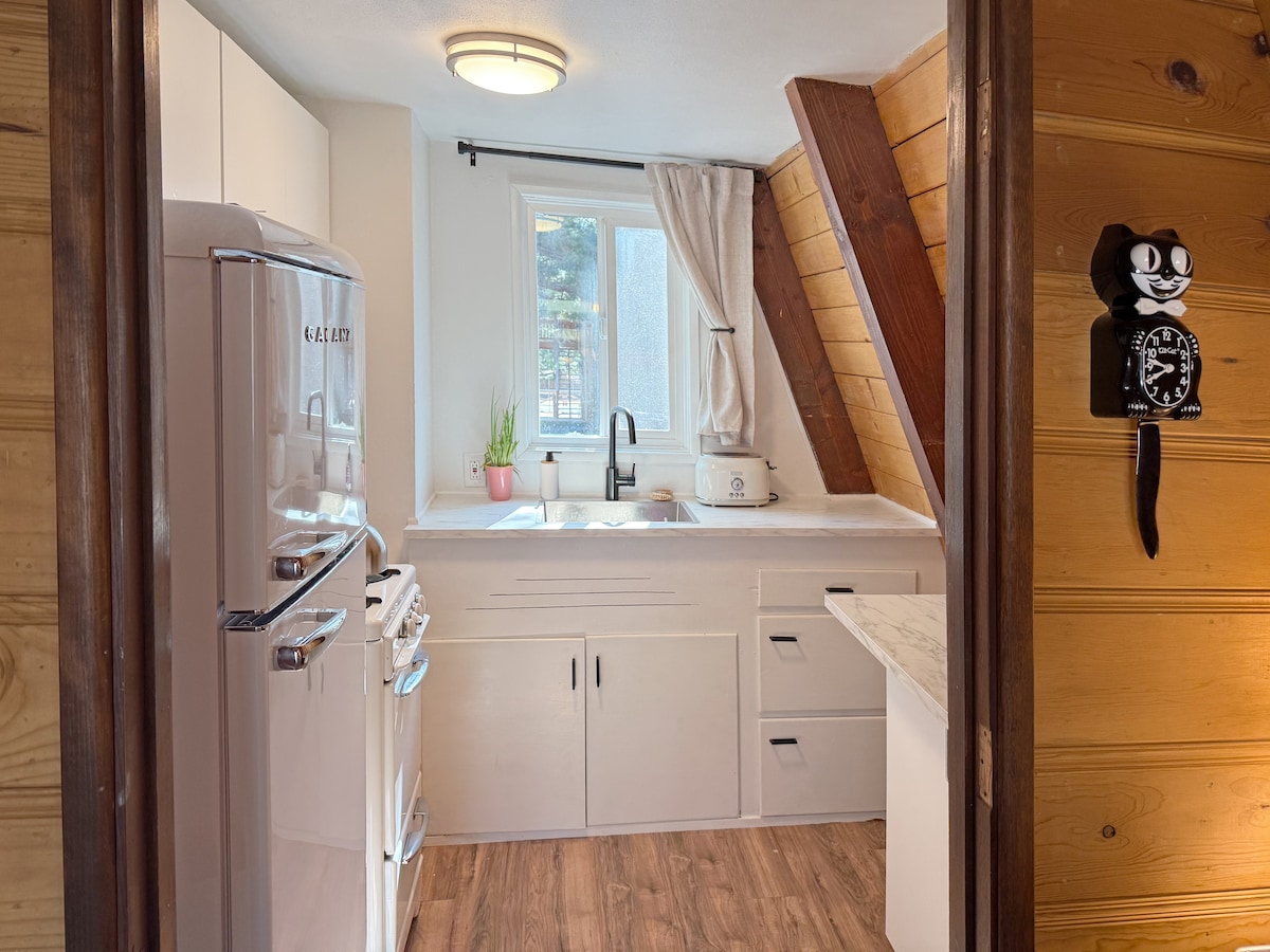 Willkommen in deinem hochgelegenen A-Rahmen-Zufluchtsort – Gäste lieben den atemberaubenden Blick auf den See und die Skipiste, das stilvolle Design und den luxuriösen Komfort in der gesamten Unterkunft. Eine perfekte Mischung aus Modernem und Rustikalem für einen unvergesslichen Kurzurlaub. Schlafplätze für 5 Personen | 2 Schlafzimmer | 5 Betten | 1 Badezimmer Panoramablick auf den See und die Skipiste Kultiges A-Rahmen-Haus im modernen Stil aus der Mitte des Jahrhunderts Hochwertige Bettwäsche und neue Matratzen Voll ausgestattete Küche für einfache Mahlzeiten Heller, designorientierter Wohnraum Ideal für ganzjährige Aufenthalte und Entspannung