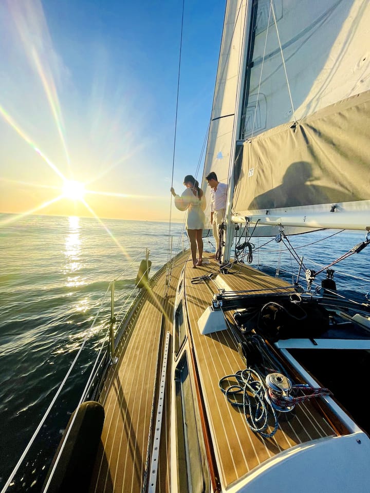 Fahre mit einem Künstler auf einem Luxus-E-Boot durch den Yachthafen