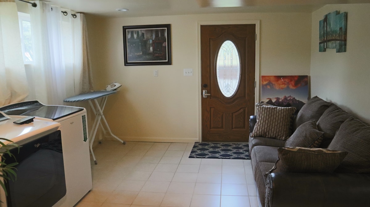 Willkommen in deinem zweiten Zuhause! Diese super saubere und geräumige Kellerwohnung mit einem Schlafzimmer, einem Queensize-Bett und einer Schlafcouch bietet alles, was du für einen angenehmen Aufenthalt benötigst: Genieße einen separaten Eingang, der zu einem gemütlichen Wohn- und Essbereich, einer ebenerdigen Dusche, einer Küchenzeile und einem separaten Schlafzimmer führt. Kostenlose Parkplätze stehen zur Verfügung und die öffentlichen Verkehrsmittel sind leicht zu erreichen. Lebensmittel und Restaurants sind nur wenige Gehminuten entfernt. Wir bieten Komfort, Bequemlichkeit und eine großartige Lage.