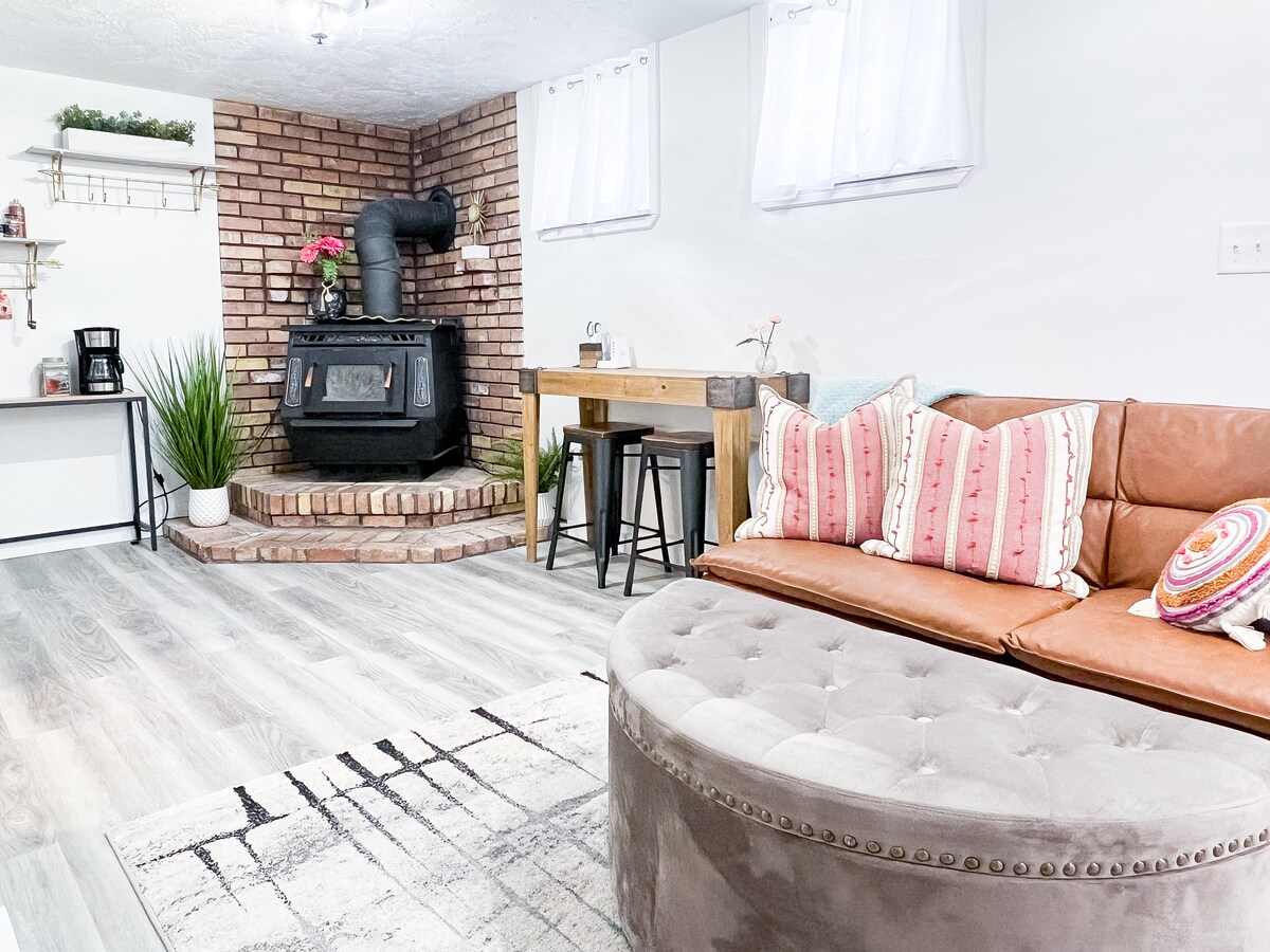 Willkommen in deinem modernen Studio in den schönen nummerierten Straßen von Idaho Falls – nur wenige Blocks von der Innenstadt entfernt! Dieser Ort hat alles: ein Kingsize-Memory-Schaum-Bett, einen bequemen Futon, einen 65-Zoll-Smart-TV mit Glasfaser-Internet, eine Waschmaschine und einen Trockner, eine voll ausgestattete Küche und eine private Einfahrt und Garage. Mach einen Spaziergang auf von Bäumen gesäumten Straßen, entspann dich im Park. Perfekter Landeplatz für Abenteurer und diejenigen, die einen ruhigen Kurzurlaub suchen. Zentral gelegen, einfacher Zugang für Reiseverträge bei INL & Krankenhäusern. Komplett eingezäunter Hinterhof für Haustiere!