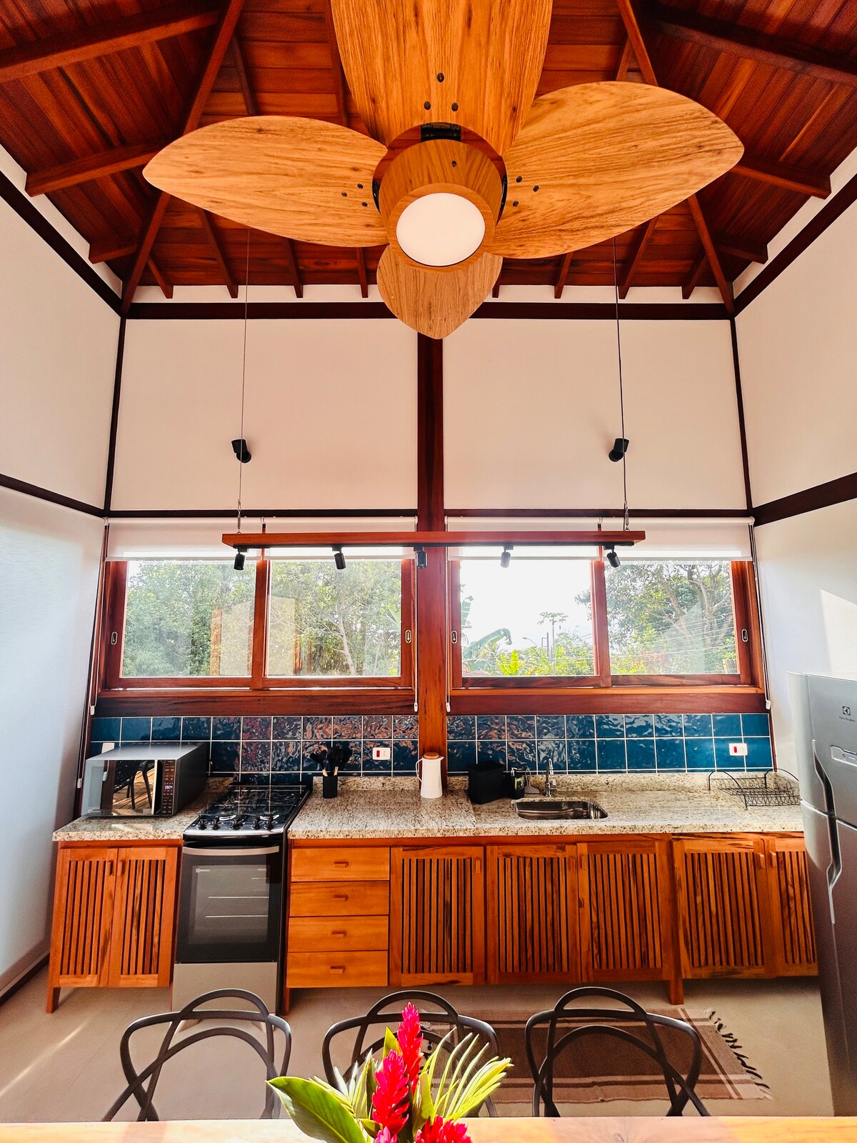 Ein Bungalow, der in jedem Detail kunstvoll gebaut wurde... Badewanne mit Blick auf den Wald mit Glasdach vermittelt das Gefühl, in die Natur einzutauchen, mit einem hundertjährigen Feigenbaum und vielen Vögeln... intim und einladend in Verbindung mit der Natur in Kontakt mit diesem Reservatgebiet des Atlantischen Waldes. Die andere Dusche mit heißem Wasser befindet sich auf dem zur Mata hin offenen Deck und ist bei Tag oder bei Nacht mit Sternenhimmel und Mondschein herrlich.
